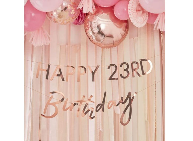 Customisable Rose Gold Happy Birthday Banner