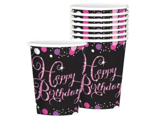 Sparkling Pink Happy Birthday Cups 8pk is backordered and will ship as soon as it is back in stock.