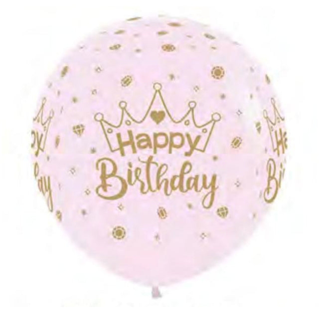 Transform your princess party room with these huge 60cm pink balloons featuring a gold Happy Birthday print with crowns and gems.