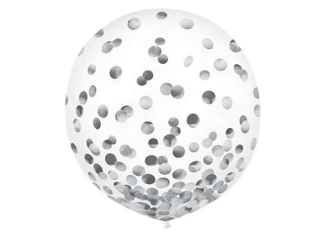 Decorate your celebration with these gorgeous large clear balloons filled with silver foil confetti.