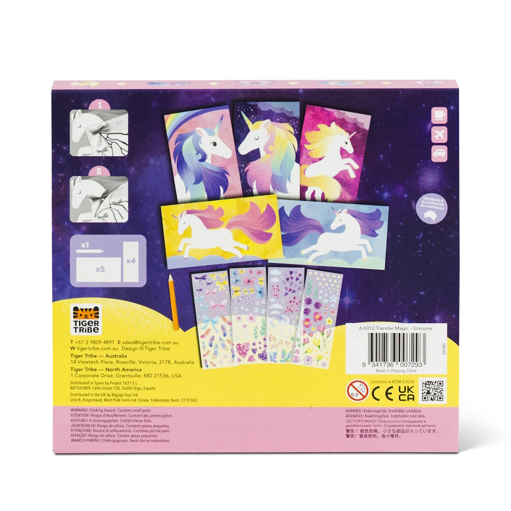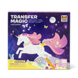 Transfer Magic is a super easy, no mess crafting activity that you can take anywhere. Simply select a transfer sheet, remove the backing paper, position the selected image face down on the background card, and rub it using the pencil included.