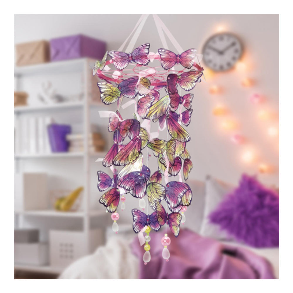 What is more beautiful than butterfly and firefly wings? A lovely mobile full of them! Capture the beauty of nature by assembling these artificial wings into an impressive room decoration. The ring holder and selected beads will glow in the dark, brightening up any space!