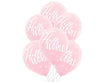 Decorate your baby shower with these gorgeous pastel pink balloons featuring the headline "Hello World" printed in white.