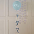 Make a statement for the new arrival with this 'it's a boy!' blue balloon and bow balloon tail.