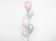 A gorgeous mix of 6 plain balloons in assorted colours: Satin pearl pink, satin pearl blue, pastel matte pink, pastel matte blue, pearl white