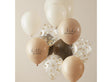 Beautiful neutral tones of caramel, nude and brown, this balloon cluster makes for the perfect baby shower decoration. Includes 3 confetti balloons with teddy bear shaped confetti.
