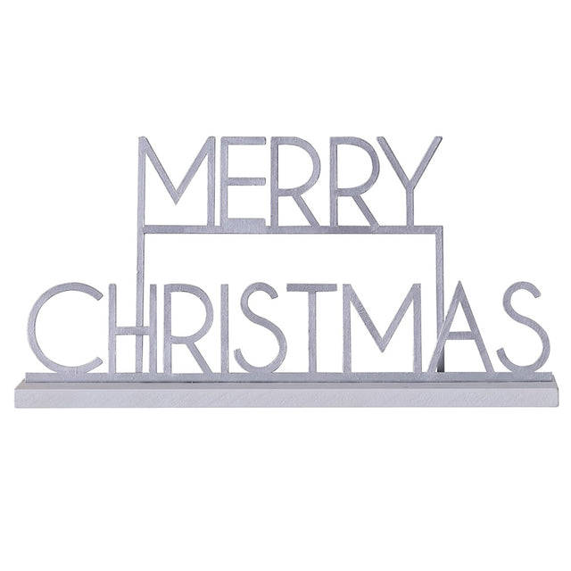 Spread warm Christmas wishes to your loved ones with this silver metal Merry Christmas sign.