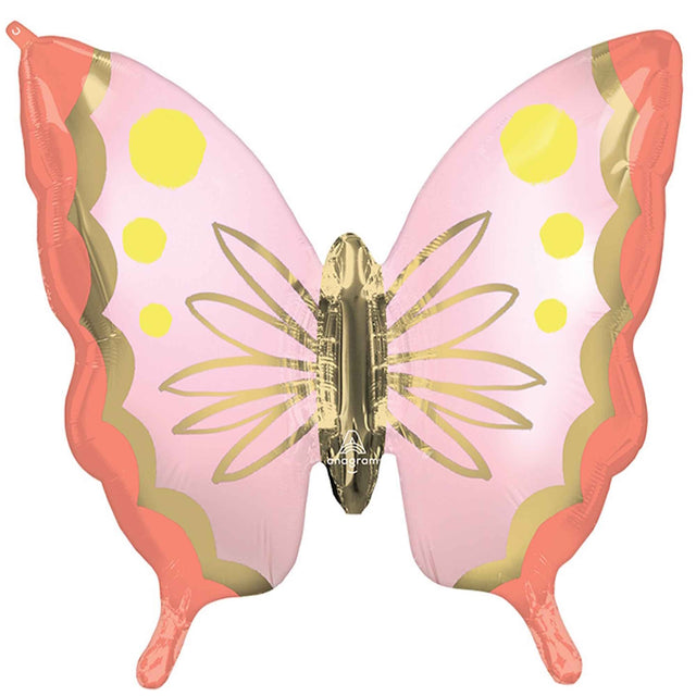 Delight your butterfly fan with this huge butterfly shaped foil balloon featuring a gorgeous combination of satin pastel colours accented with shiny gold detail.
