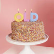 Featuring soft pastel letters that stand out beautifully on any cake, it’s an easy way to get laughs before the candles are even lit.