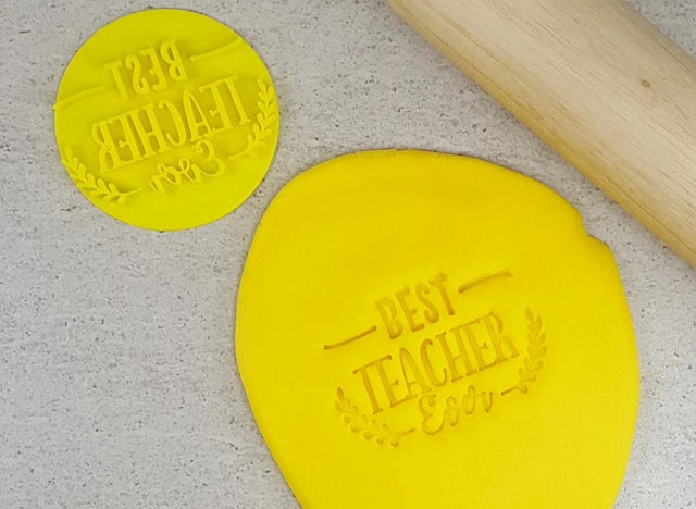 Emboss fondant, dough or gumpaste with this delightful "Best Teacher Ever" design.