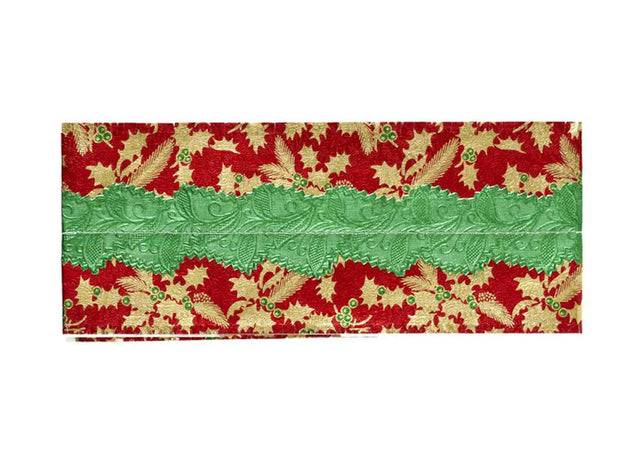 This traditional Christmas cake frill features a gold holly patterned border and green embossed foil centre - a simple and effective way to finish your Christmas cake.