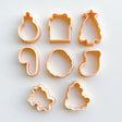 Designed by Little Biskut, the set includes 8 x Festive Cutter (Bauble, Present, Tree, Candy Cane, Santa, Stocking, Stars, Holly) approx 4cm high