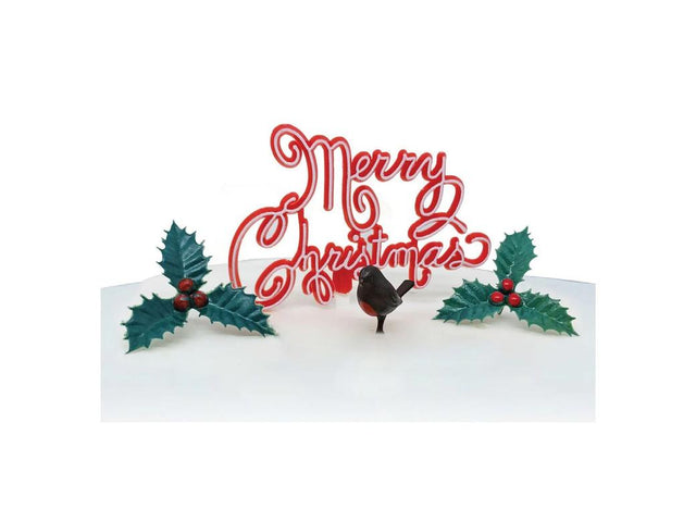 Pack includes: 1 Nostalgic Merry Christmas Motto, 1 Robin, and 2 Holly
