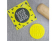 The design has been made to perfectly suit a 70mm round standard size cookie as seen in the images but as it's centered within a 100mm square non-stick debosser it is suitable for many shapes and size cookies.