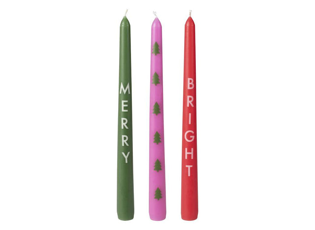 Merry & Bright Christmas Dinner Candles 3pk