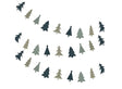 Eco-friendly and stylish, this collection of green Christmas tree cutouts are strung along the garland to create a modern display.