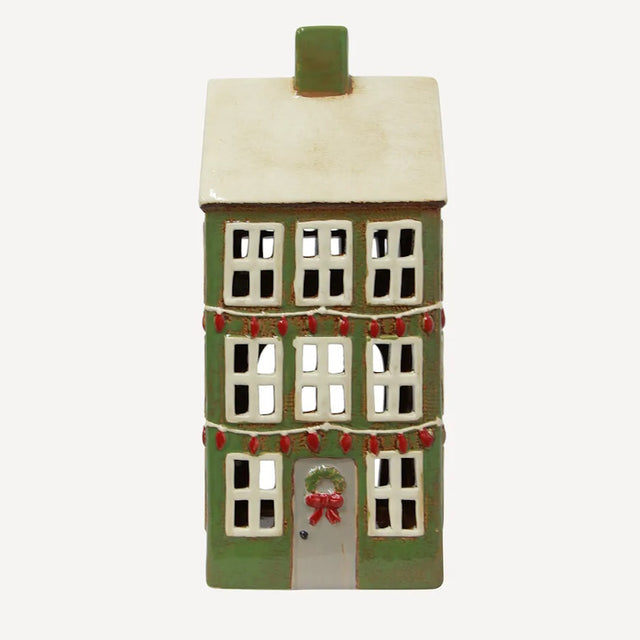 Alsace Tea Light Grande Chalet Christmas Green measures 15.5cmL x 16cmW x 36cmH