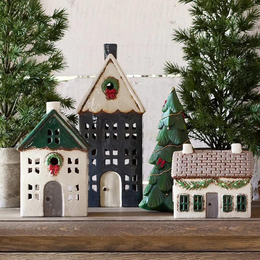 Each charming ceramic house is designed to hold a tealight (sold separately) to provide a cosy warm glow.