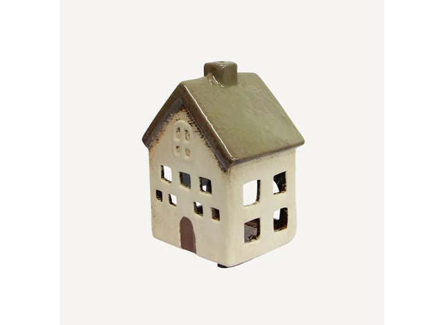 Alsace Tea Light Villa Olive Green measures 9cmL x7cmW x 12cmH