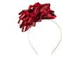 Red foil bow measures 10cm diameter and is attached to metal headband.