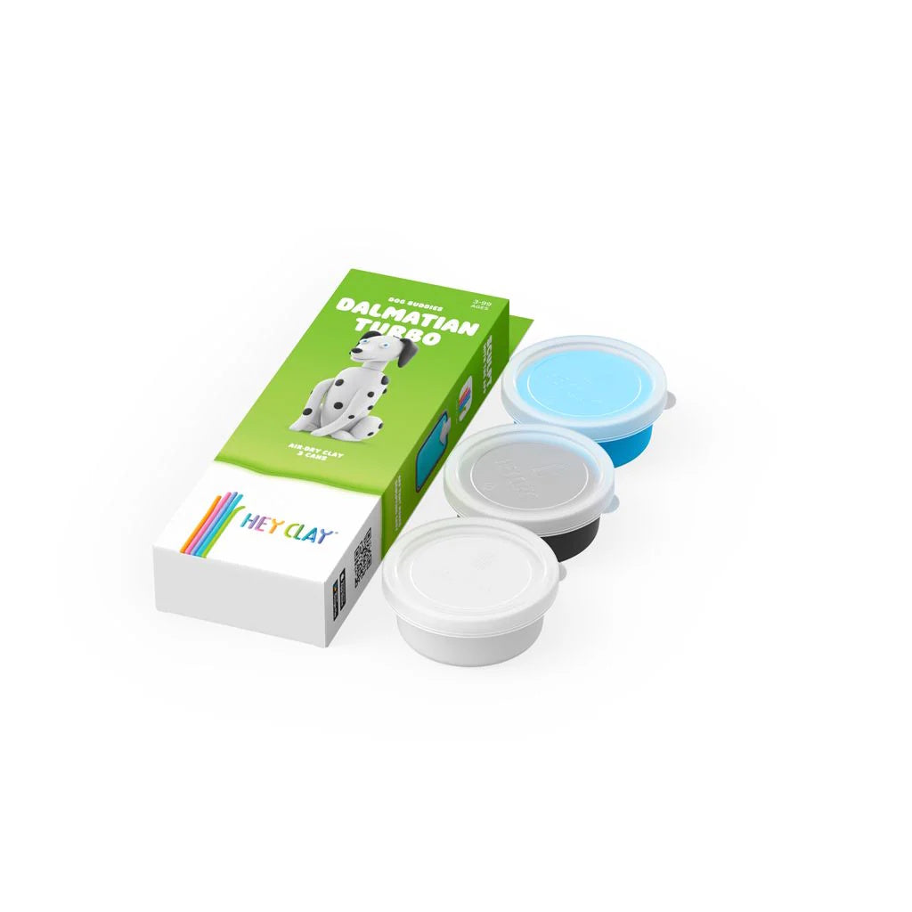 Let your youngster's imagination run wild with this adorable Dalmatian Turbo clay from Hey Clay! 3 tubs of soft air-dry clay are included in an array of colours for endless fun.