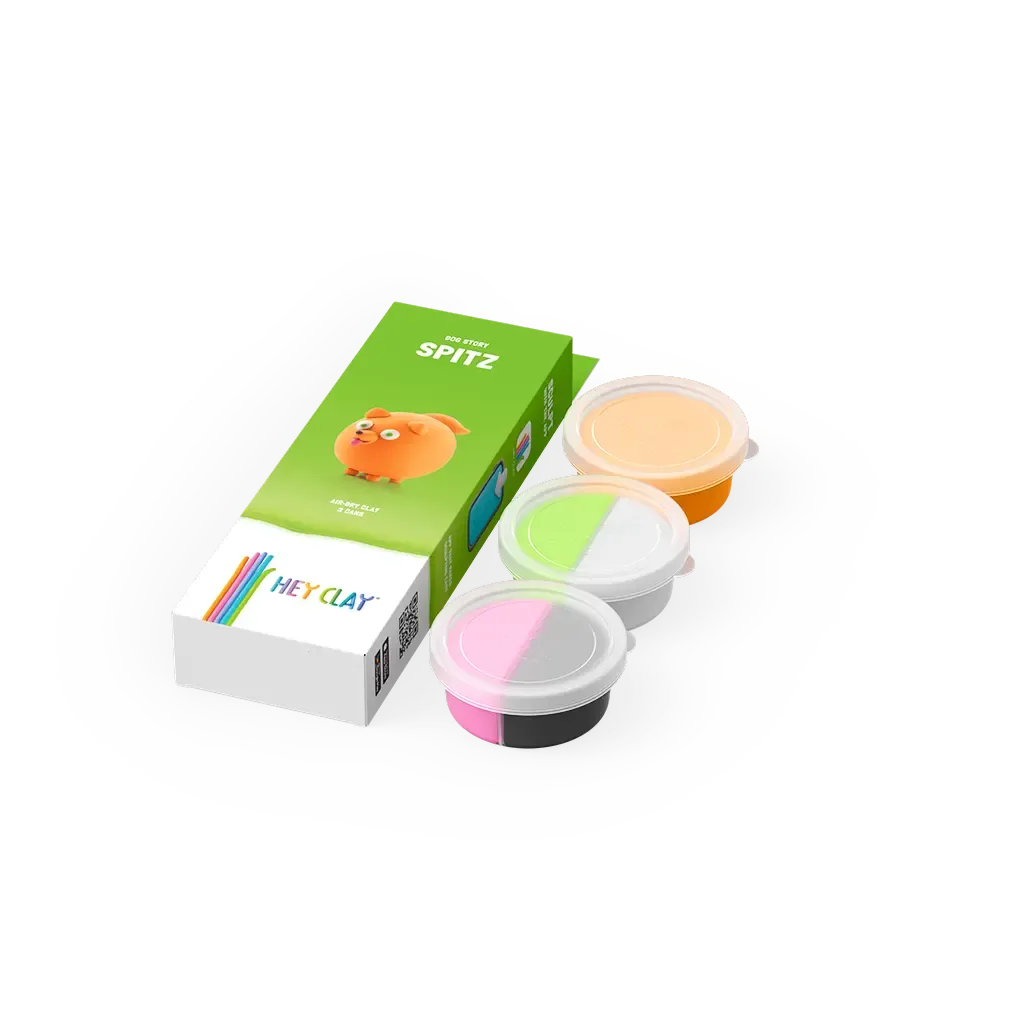 Let your youngster's imagination run wild with this vibrant Dog Story Spitz clay from Hey Clay! 3 tubs of soft air-dry clay are included in an array of colours for endless fun.