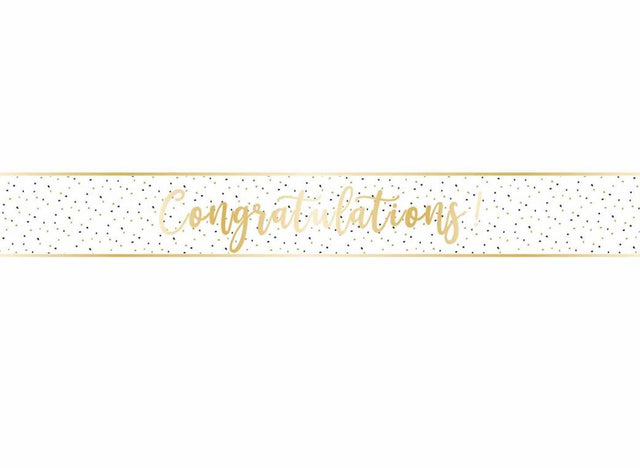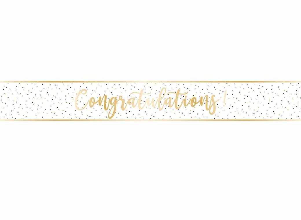 Hang this gold coloured "Congratulations" foil banner across a wall or pergola to celebrate an achievement or milestone with family and friends.