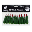 I'll get you, my pretty! Set of 10 green wicked witch fingers with long blood-red fingernails and bumpy warts.