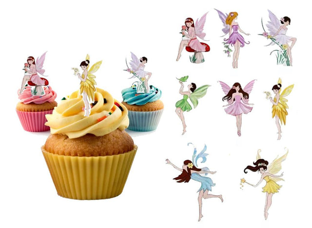 Each pack includes 16 pre-cut thick wafer toppers with an assortment of colourful fairies.