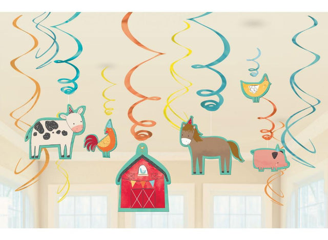 Quickly and easily add colour and excitement to your farm-themed party room with these friendly farm animal hanging spiral decorations.