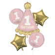 Celebrate your little miss’s first birthday with this HUGE cluster of 5 foil balloons!