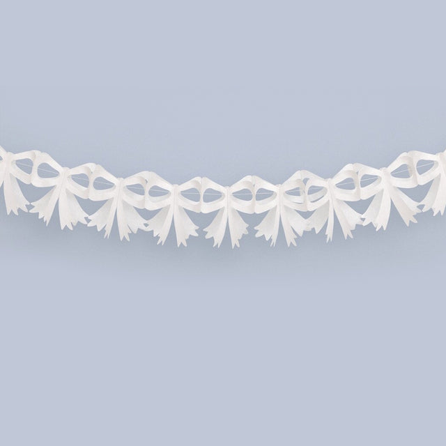Add a touch of elegance to your party with this elegant white bow tissue paper garland.