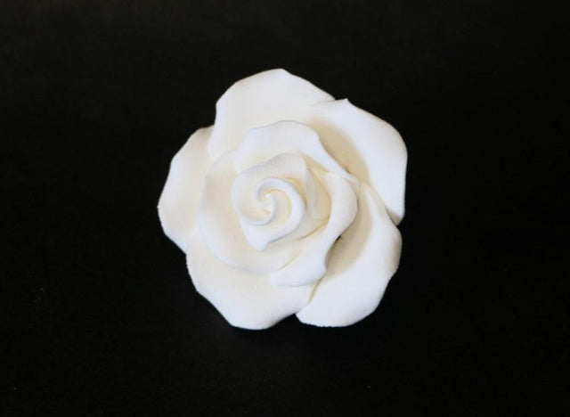 Readymade large gumpaste white rose. Can be used white, or add detail with dust, paint or airbrush.