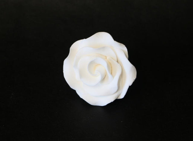 Readymade medium gumpaste white rose. Can be used white, or add detail with dust, paint or airbrush.