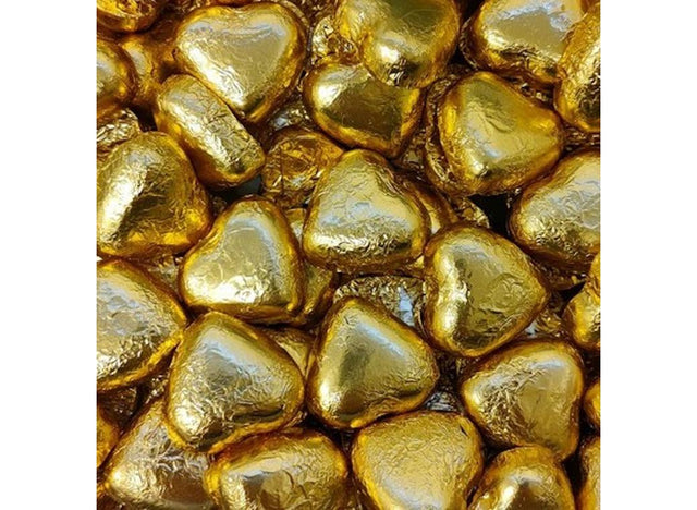 Show the love with these heart shaped milk chocolates wrapped in gold foil.
