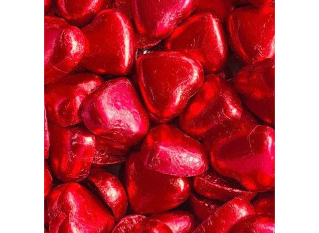 Show the love with these heart shaped milk chocolates wrapped in red foil.