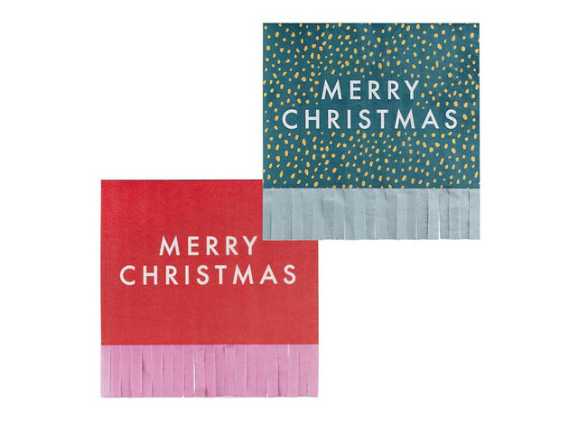 Dress the table this party season with these bright Merry Christmas napkins. The double-sided napkins are red on one side and green on the other, with fun fringe detail.