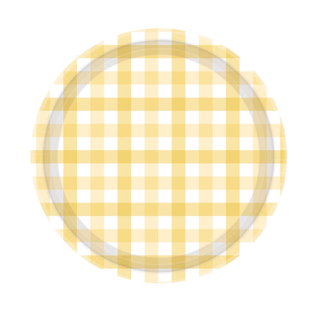 Add a touch of charm to your table with these pastel yellow gingham print paper plates.