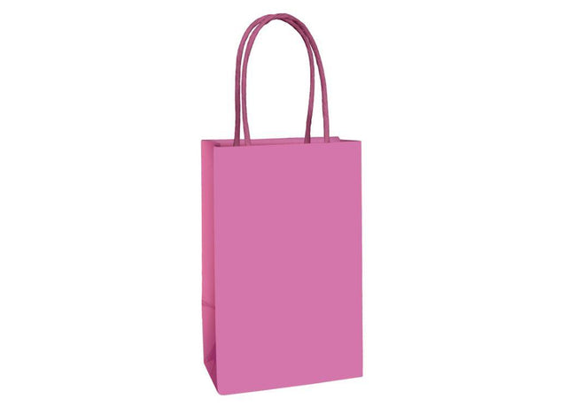 Pack of 8 bright pink paper treat bags with coloured rope twist handles.