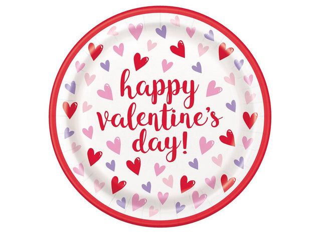 Celebrate love in style with these chic party plates featuring a red and pink hearts and a "Happy Valentine's Day" heading. Perfect for Valentine's Day gatherings, they'll add a touch of charm to your table setting!