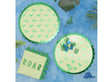 Your dinosaur party guests will love these green foiled dinosaur plates with dinosaur spiked edges!