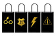 Your Harry Potter party guests will love taking home treats in these black paper treat bags. The bags are embossed with Harry Potter designs in shiny gold foil.