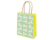 The cute design features leaping bunnies on the front and back, and a yellow gingham pattern on the gusset. The bags are finished with natural twisted paper handles.
