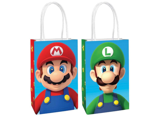 Your guests can take home party goodies in these colourful Super Mario treat bags featuring Mario and Luigi.