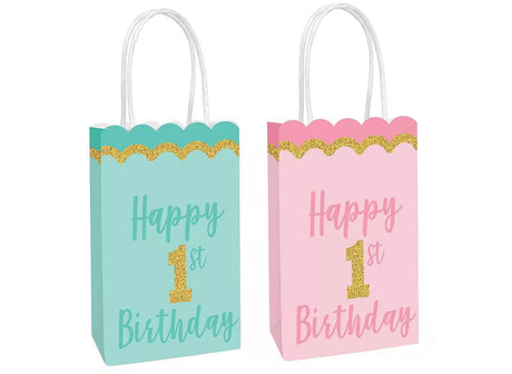 Gold Glitter 1st Birthday Treat Bags 8pk