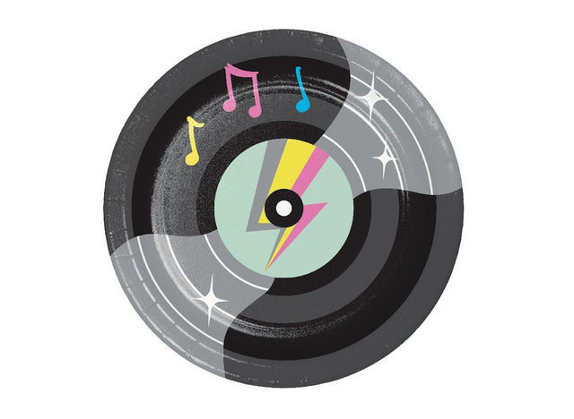 Featuring a bold vinyl record and music notes design, these plates are perfect for karaoke nights, disco parties, and music-loving celebrations.