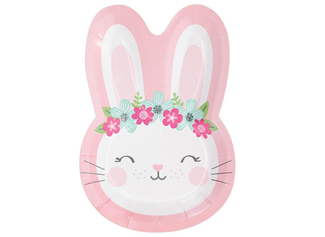 These super cute bunny shaped plates feature an adorable smiling bunny wearing a floral headband.