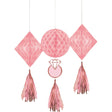 The set of 3 honeycombs feature diamond and heart shapes, along with a rose gold foil tassel underneath - perfect for engagement parties, weddings, anniversaries and more.