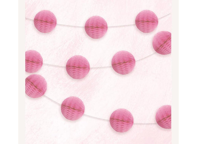 Create a festive look with this hot pink tissue honeycomb ball garland.