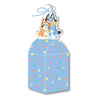 These fun Bluey favour boxes feature Bluey and Bingo and a colourful design. The boxes tie together at the top with pale blue satin ribbon.